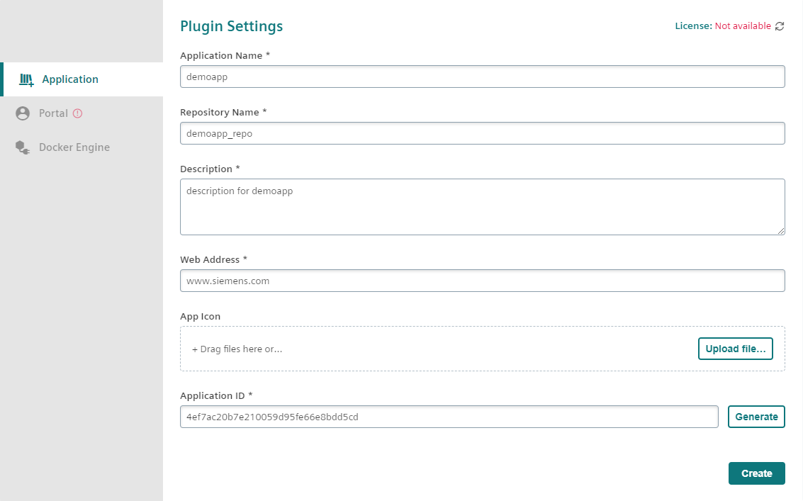 Click on the "Create" button. This will restart the plugin once. The app settings can also be changed afterwards.