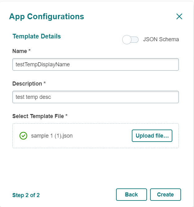 If the template based configuration file you want to use is in the "*.json" format, enable the "JSON Schema" toggle.