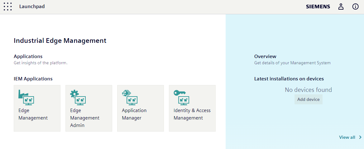 - Log into the Industrial Edge Hub.