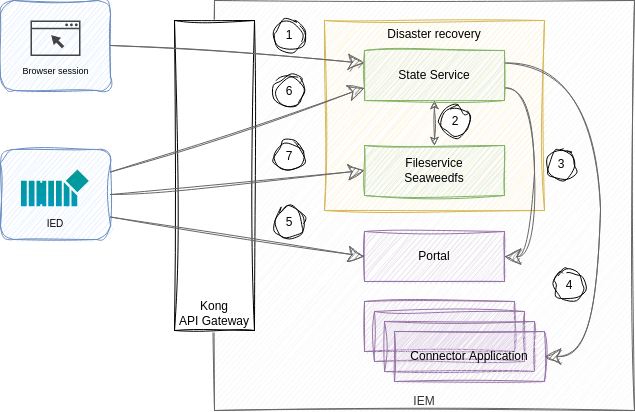 | ① | Communication between State Service and IEMA/Portal happens via user's session token. |