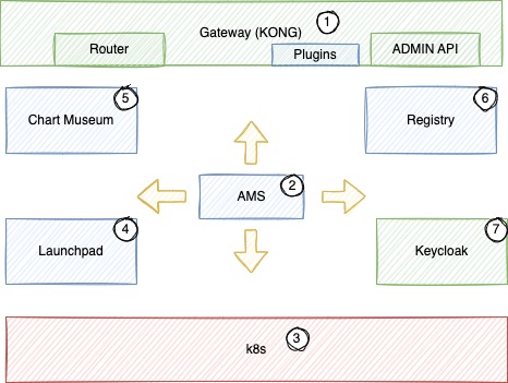 | ⑤ | Auth | Components providing IAM, Gateway and token exchange functionalities. |